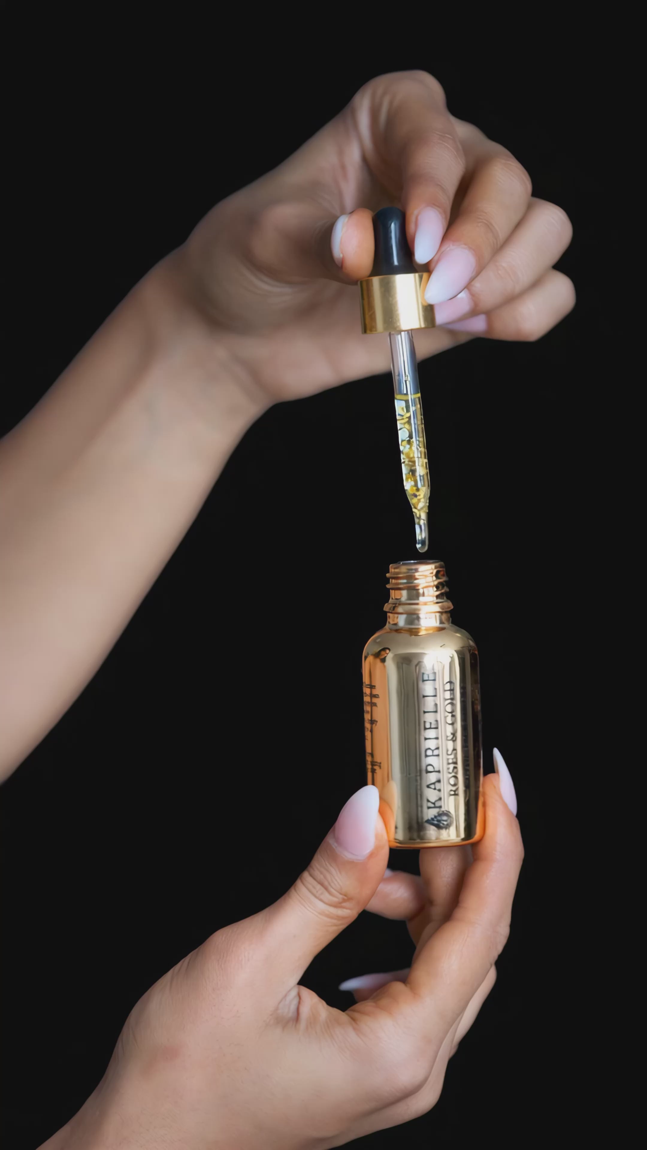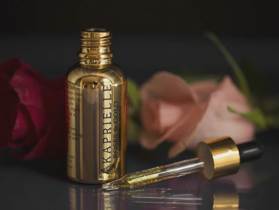 On a clean face, apply Kaprielle's Roses & Gold exotic face serum.