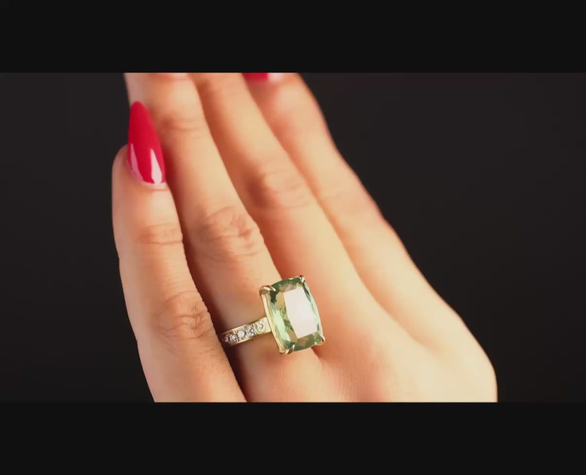 The Majesty Ring is crafted with pure gold, the highest-grade diamonds, and a 9-carat Brazilian Blue Tourmaline — some of the highest-vibrating and richest elements on Earth.